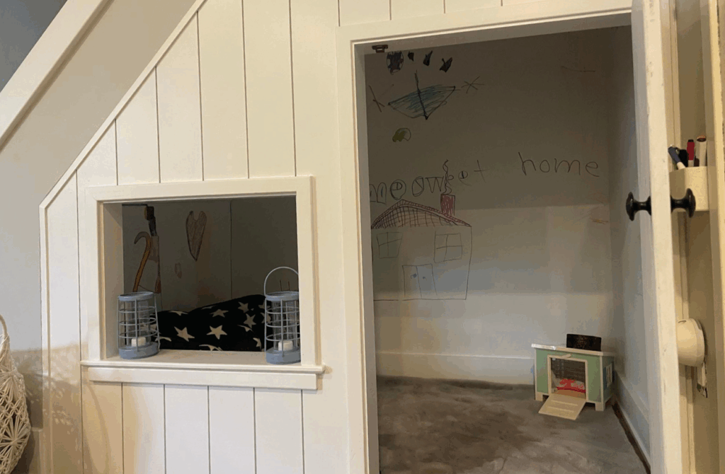 This space can be a gaming pod or a reading corner. You could make a split door and use it for puppet shows. Alternatively, it can be the one place in the house where the kids can color on the walls since no one else will really see it! Local designer, She Designs Philly created a cozy play area under the stairs in a Victorian twin basement.