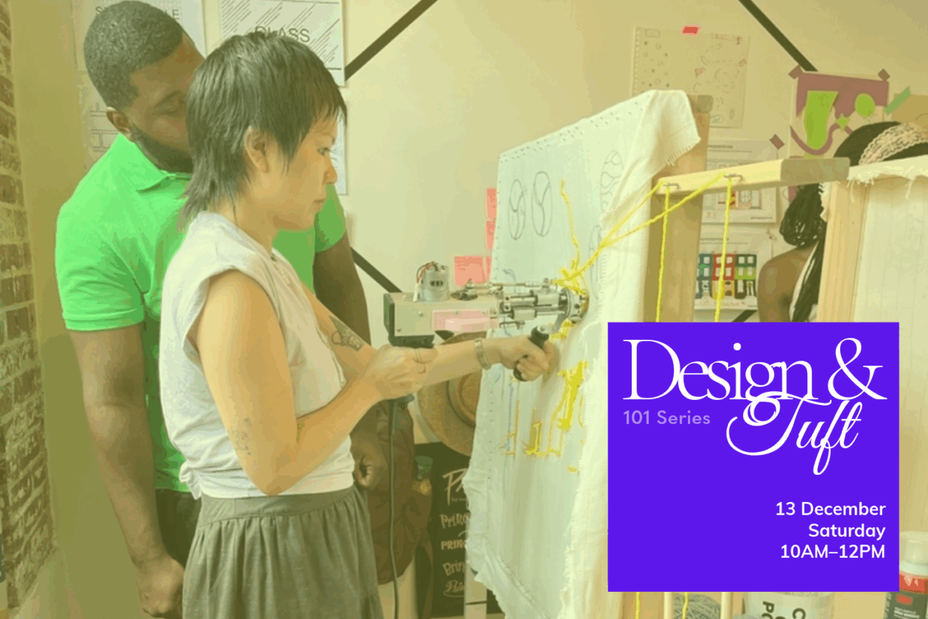 Design A Doodad is a fun two-part tufting workshop happening on November 21st and 22nd with Crimson Thread Workshop. Young artists will learn design skills and create their own tufted artwork (up to 28 × 28 inches) using studio tools and materials. Space is limited