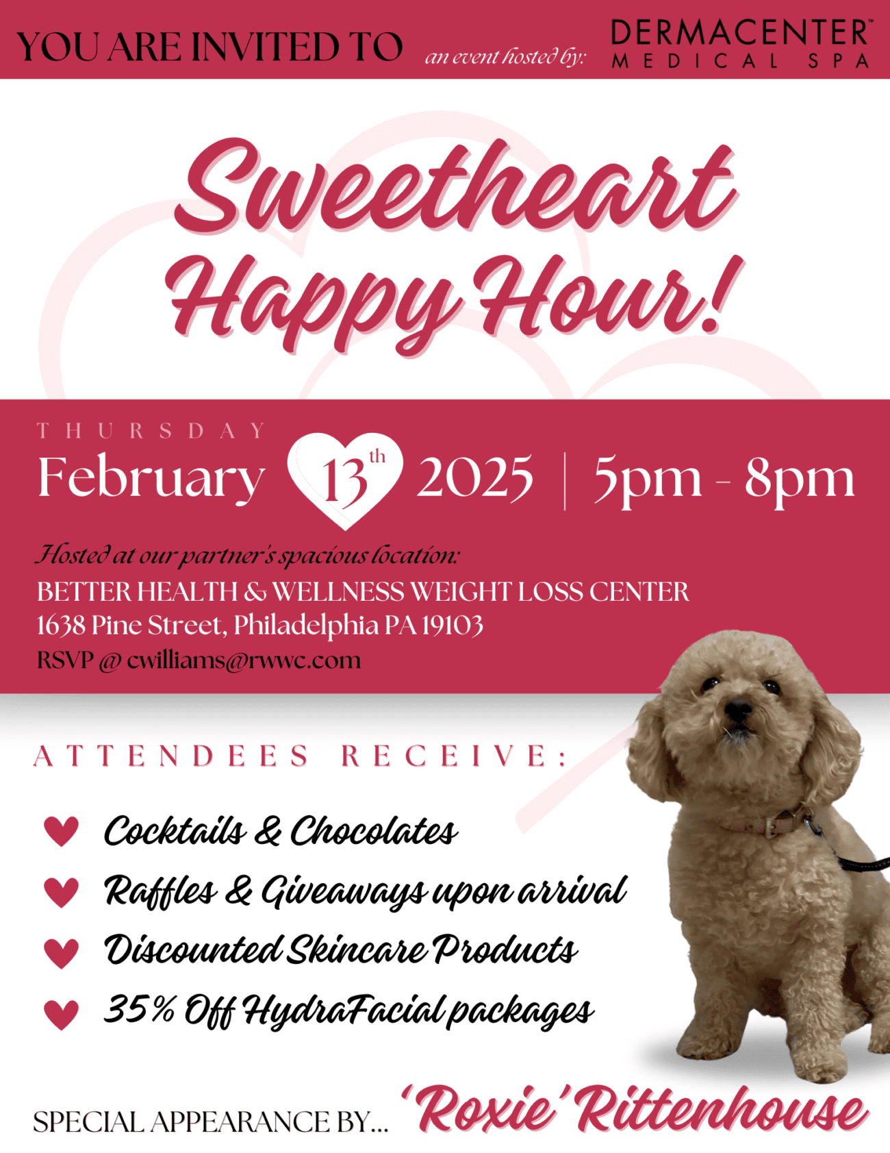 Enjoy a Sweetheart Happy Hour on February 13th, 2025, from 5-8 pm at Better Health & Wellness Weight-Loss Center!