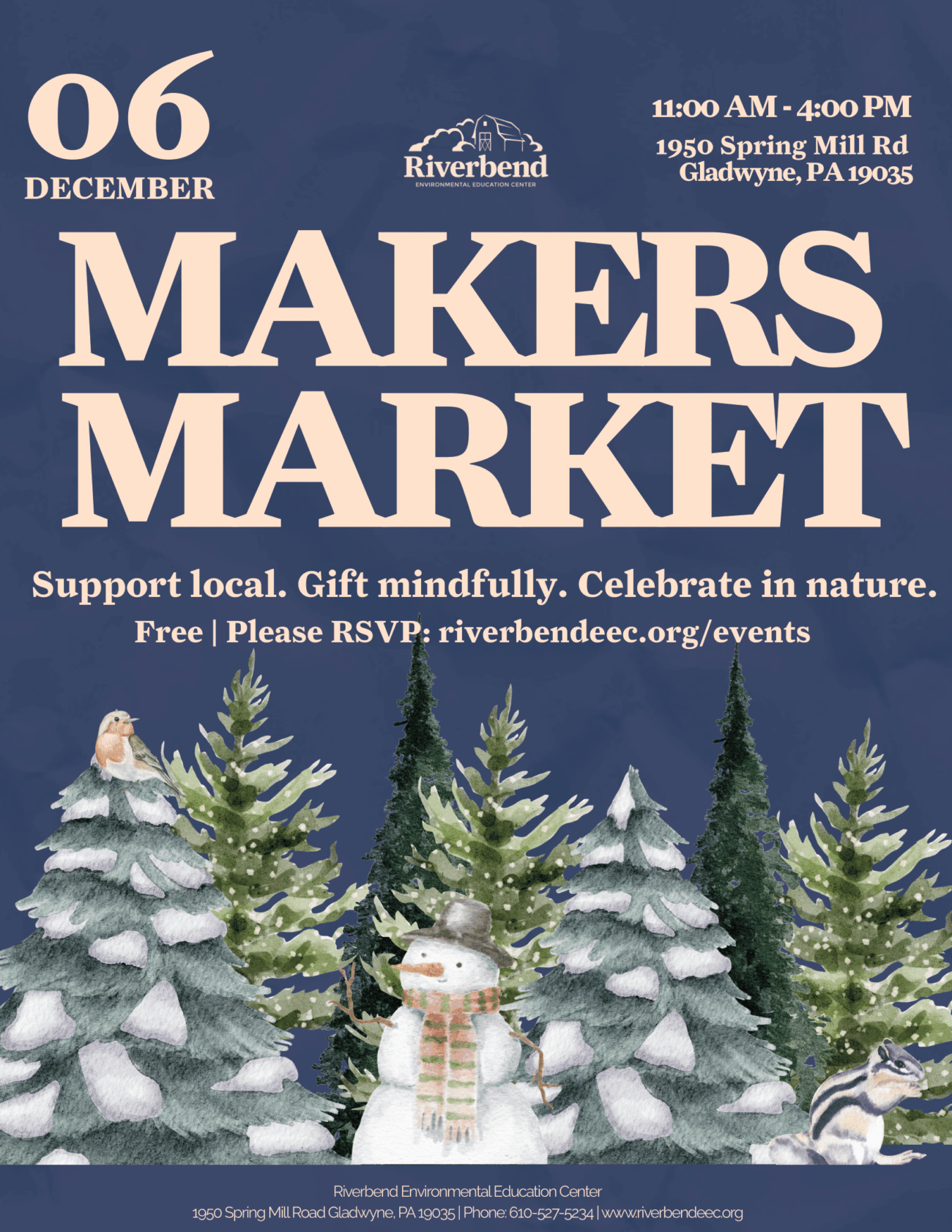 Riverbend invites families to join them for a festive afternoon at their Merry and Mindful Makers Market on December 6th, featuring local artists, makers, and growers sharing handmade, eco-friendly gifts at an outdoor marketplace. Guests can enjoy s'mores roasting, wreath making, live painting and Mala-knotting