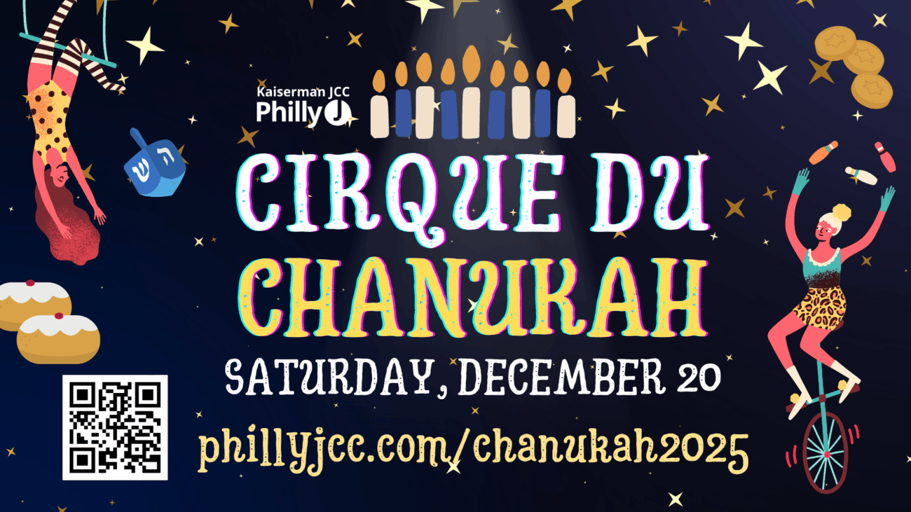 Enjoy a special Cirque du Chanukah show at Kaiserman JCC with Chanukah music, acrobats, high flying aerial and acrobatic acts, trampoline, juggling, comedy and more. A kosher dinner of of latkes, chilli, and sufganiyot, will accompany the show and is included in the ticket price.