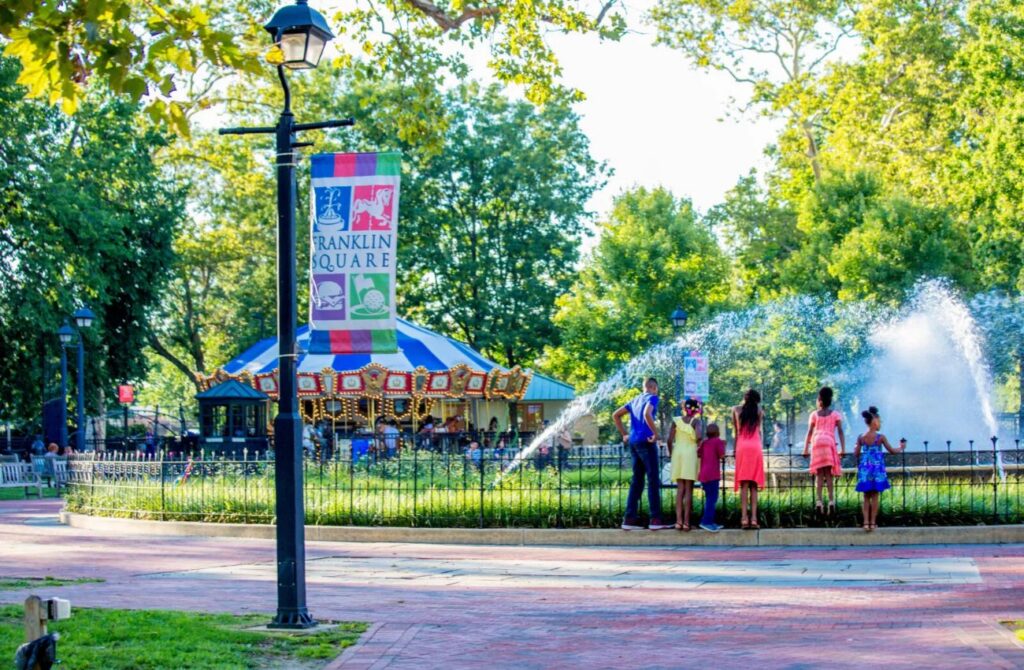 Rooted in William Penn’s original 1682 blueprint for Philadelphia, Franklin Square is a historic seven-acre retreat that has transformed into one of the city’s family destinations. Since the park is tucked between the Historic District, Old City, and Chinatown, it centers around a grand fountain dating back to 1838 and draws locals and visitors alike with its warm, old-world charm.